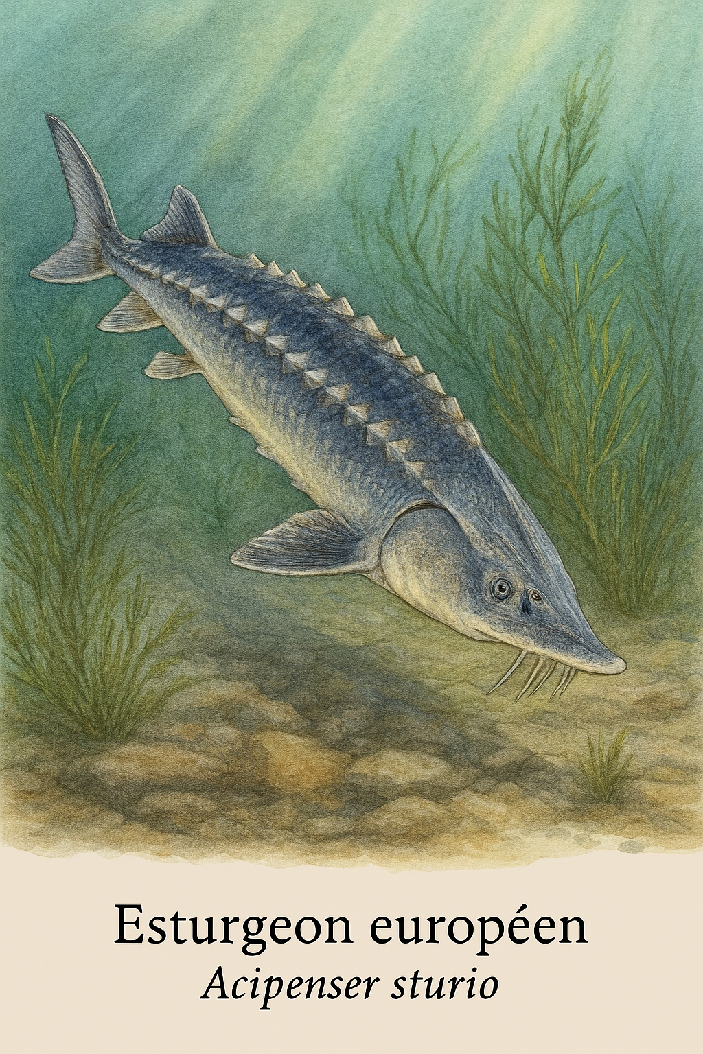 L’esturgeon européen (Acipenser sturio), historiquement présent
