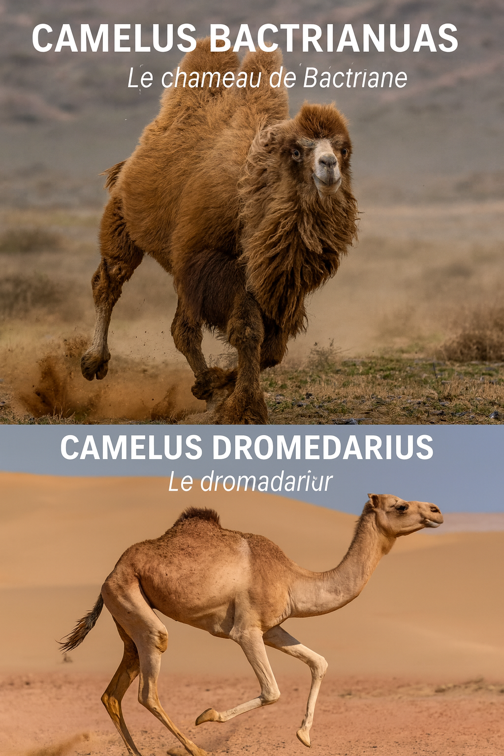 Bactriane (Camelus bactrianus) est plus trapu, avec une hauteur de