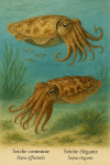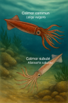 La première image représente deux espèces de calmars illustrées