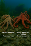 La seconde image montre le calmar de Humboldt, Dosidicus gigas,