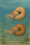 La seconde image présente deux autres espèces de nautiles dans un