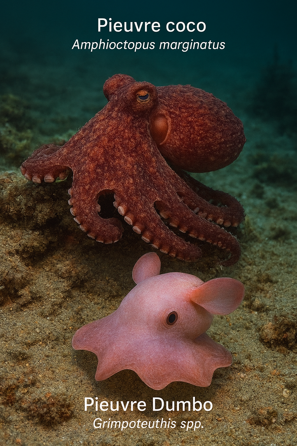 La seconde image montre deux petites seiches dans une scène sous-marine