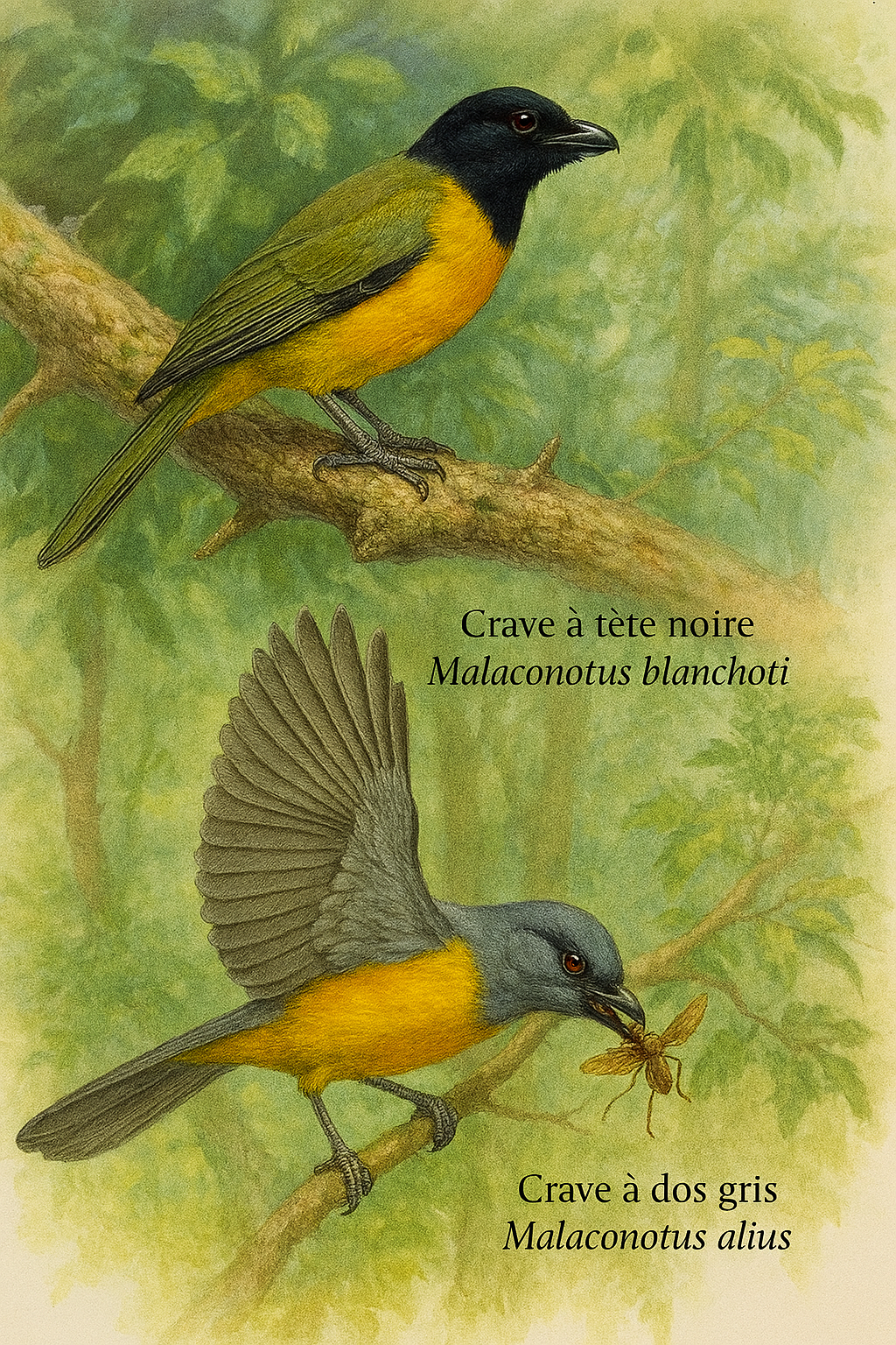Lanioturdus. Ils sont proches des Vangidés et des Malaconotidés,