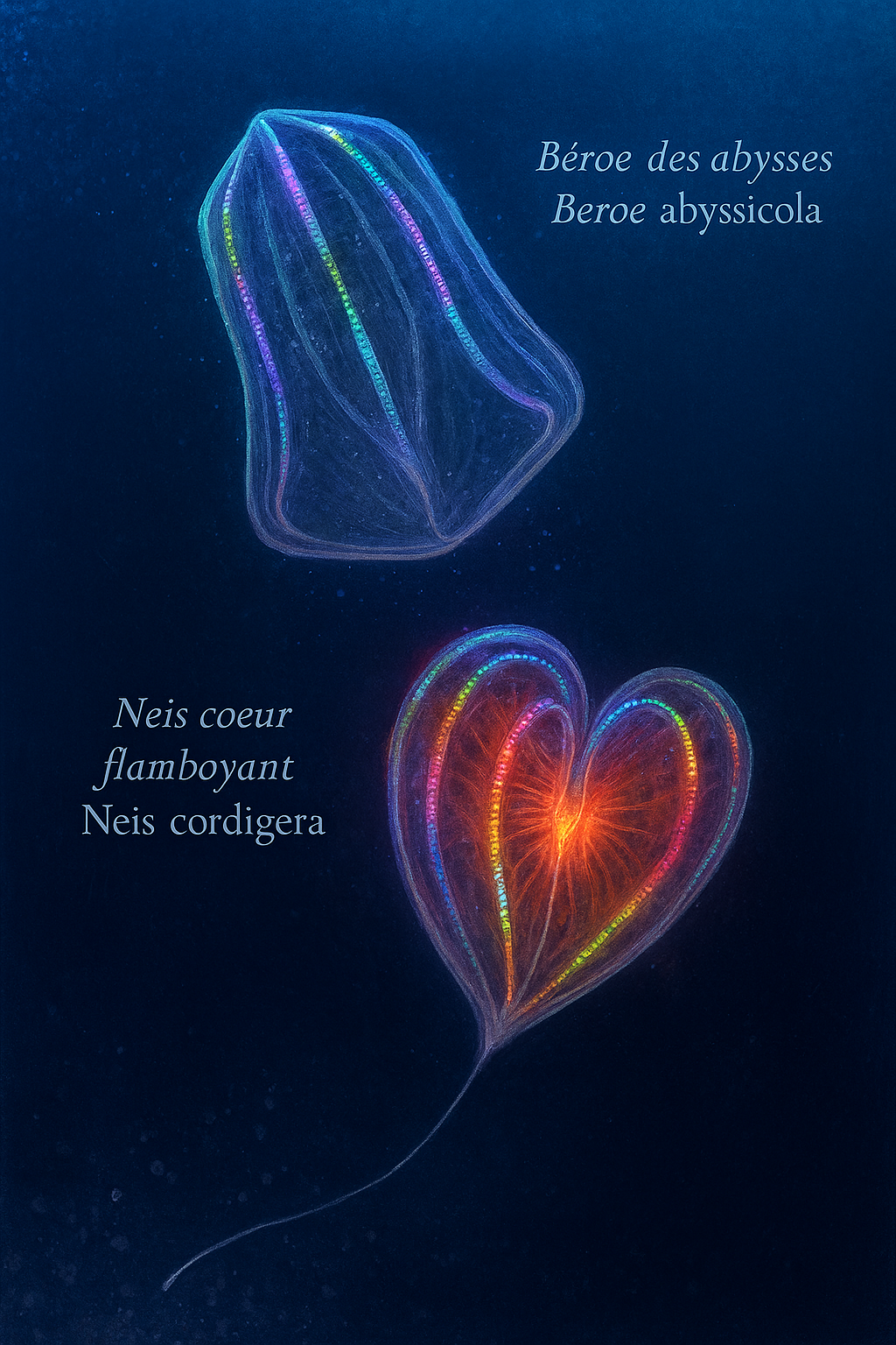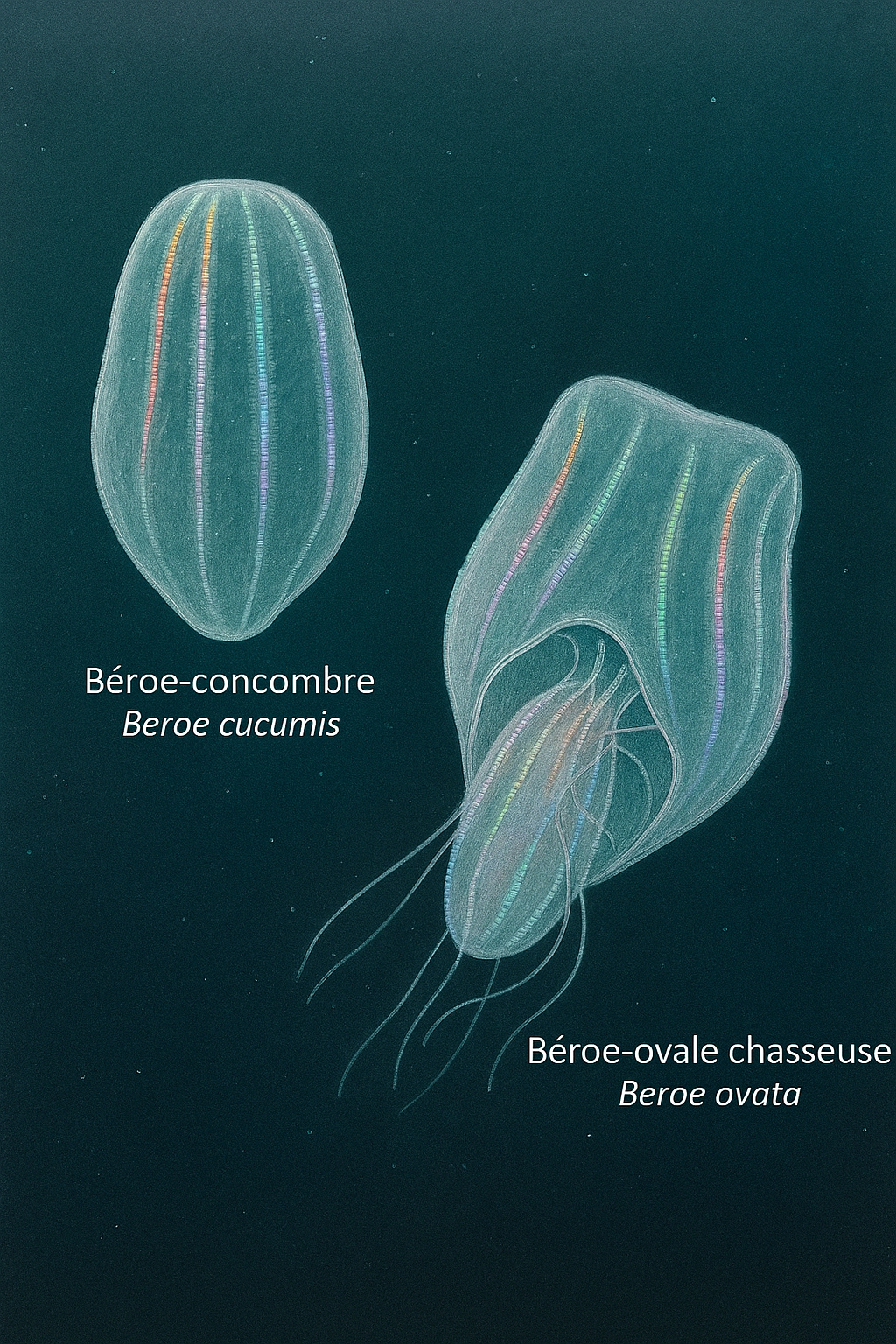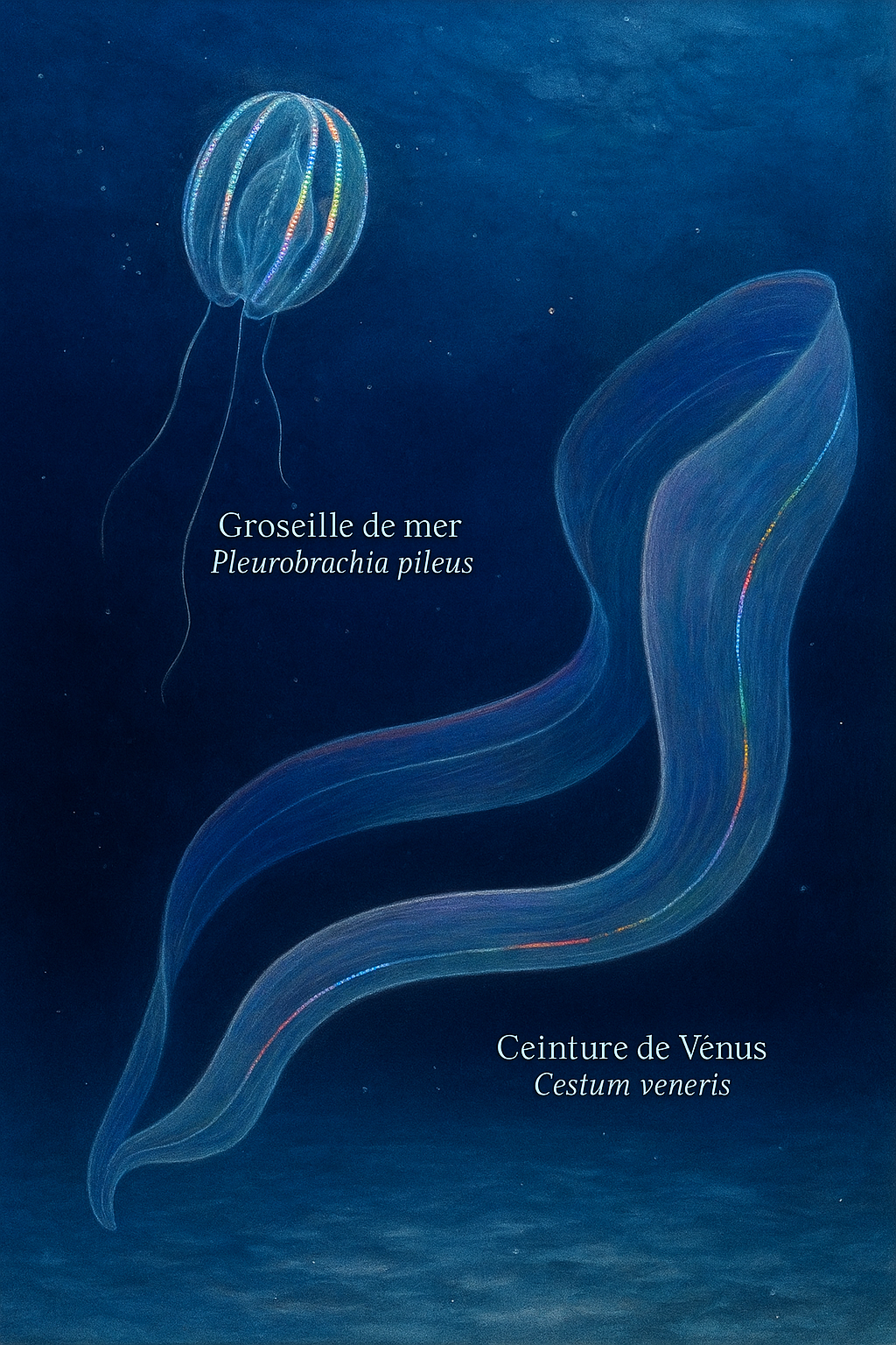 phylum Ctenophora. Ce sont des organismes planctoniques, souvent