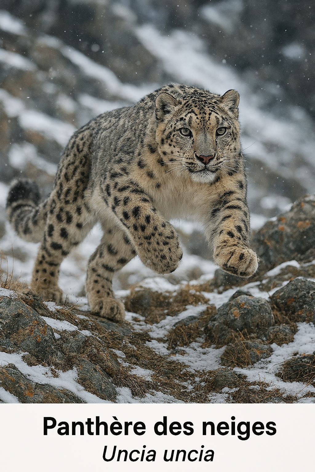 son agilité et sa puissance. Le pelage tacheté est bien visible, et