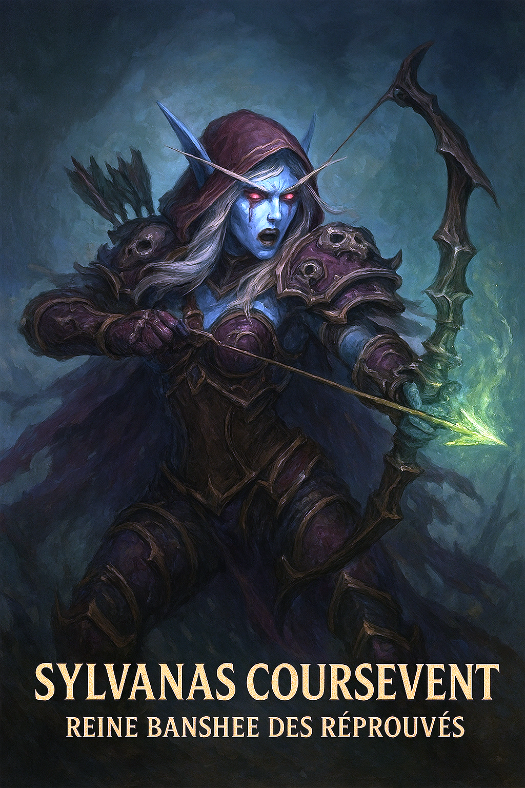 rouge sombre, armé d’une hache massive ; et Sylvanas, banshee aux