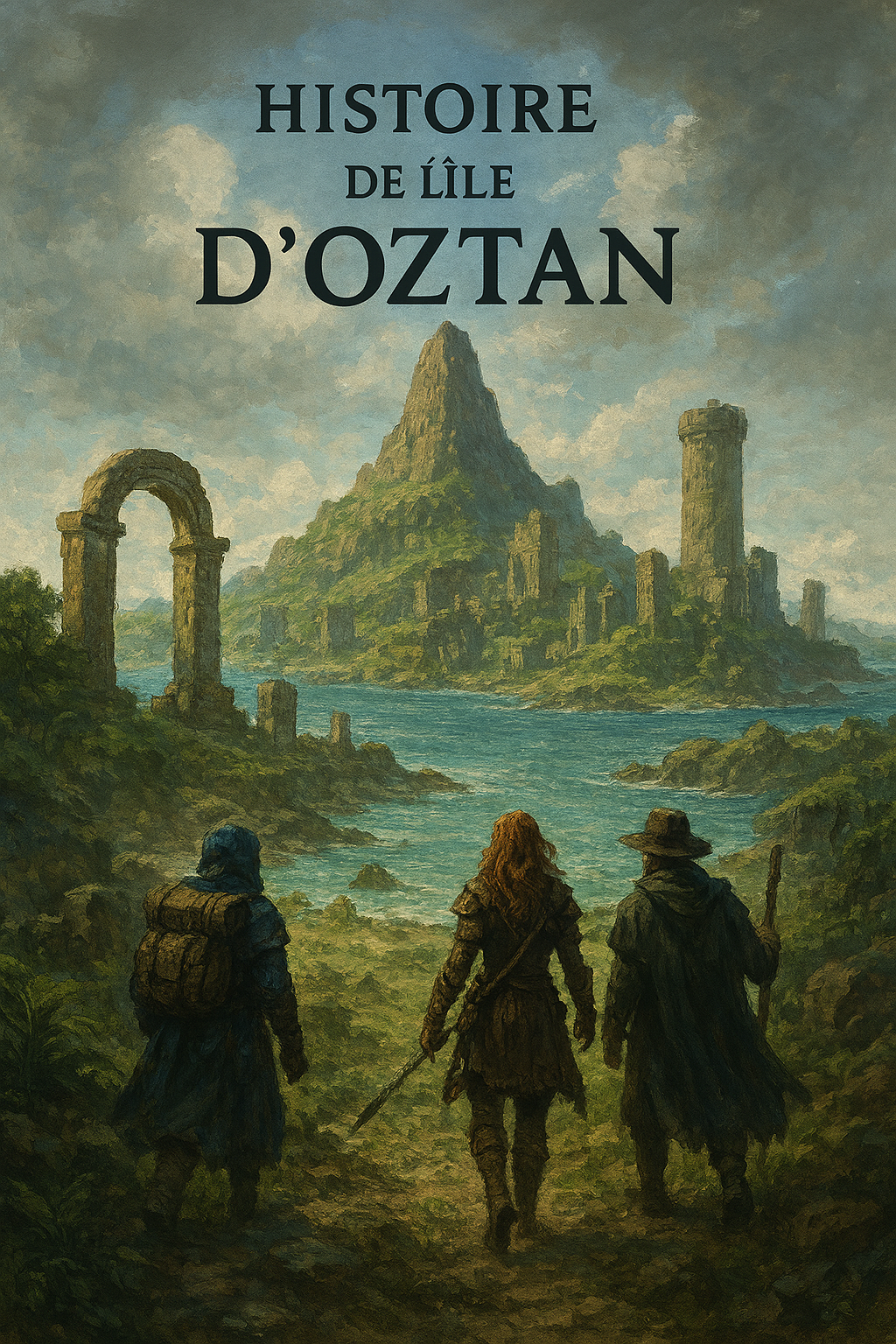 L’image montre l’île d’Oztan au centre d’un paysage dramatique dominé