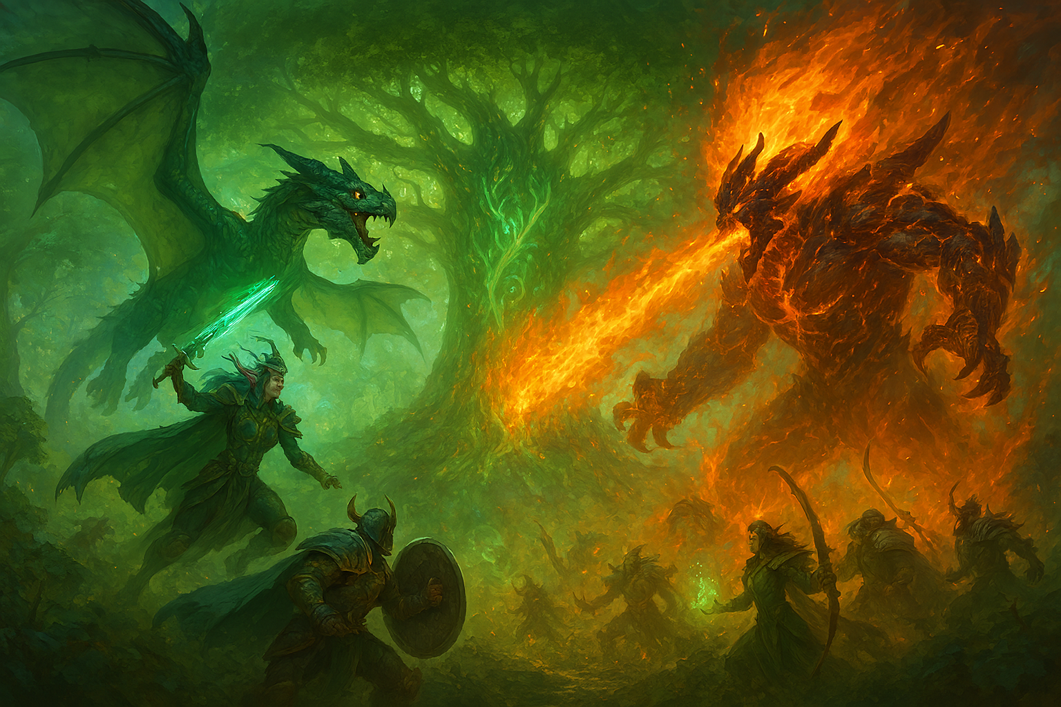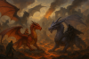 majestueux se font face sur un champ de bataille embrasé. Le dragon de