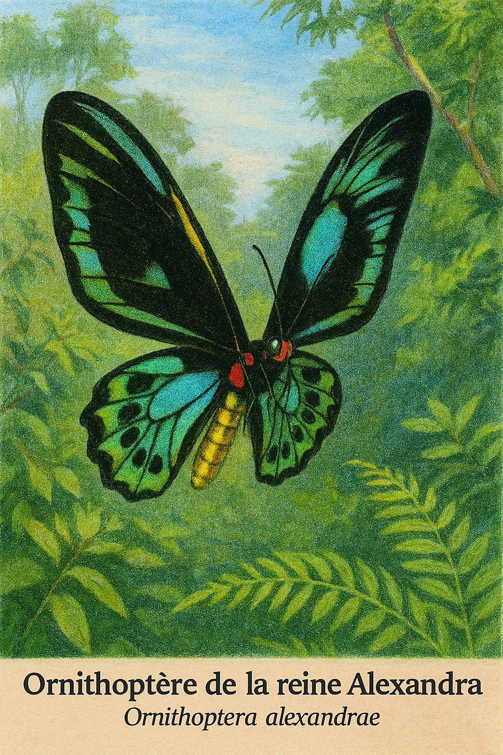 Ornithoptère de la reine Alexandra, est le plus grand papillon diurne au