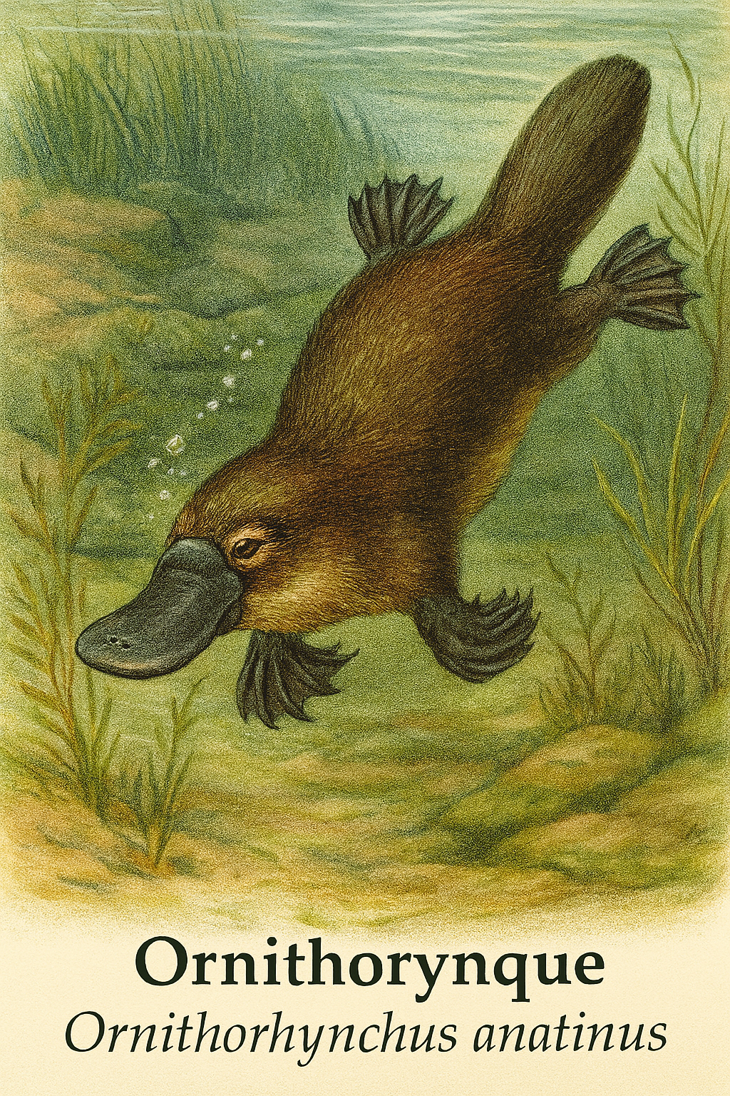 accompagnée du mot français « Ornithorynque » et du nom scientifique «