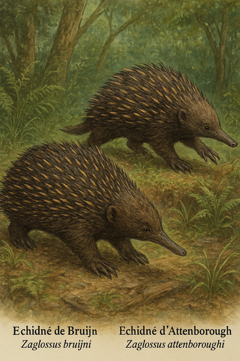 suggérant une illustration comparative entre deux espèces d’échidnés