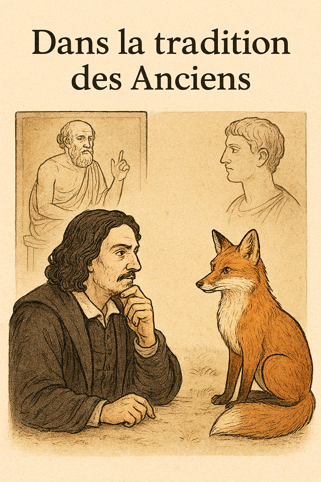 l’inspiration antique, un corbeau et un renard incarnant les personnages