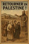 un décor moyen-oriental. En haut de l’image, le slogan RETOURNER EN