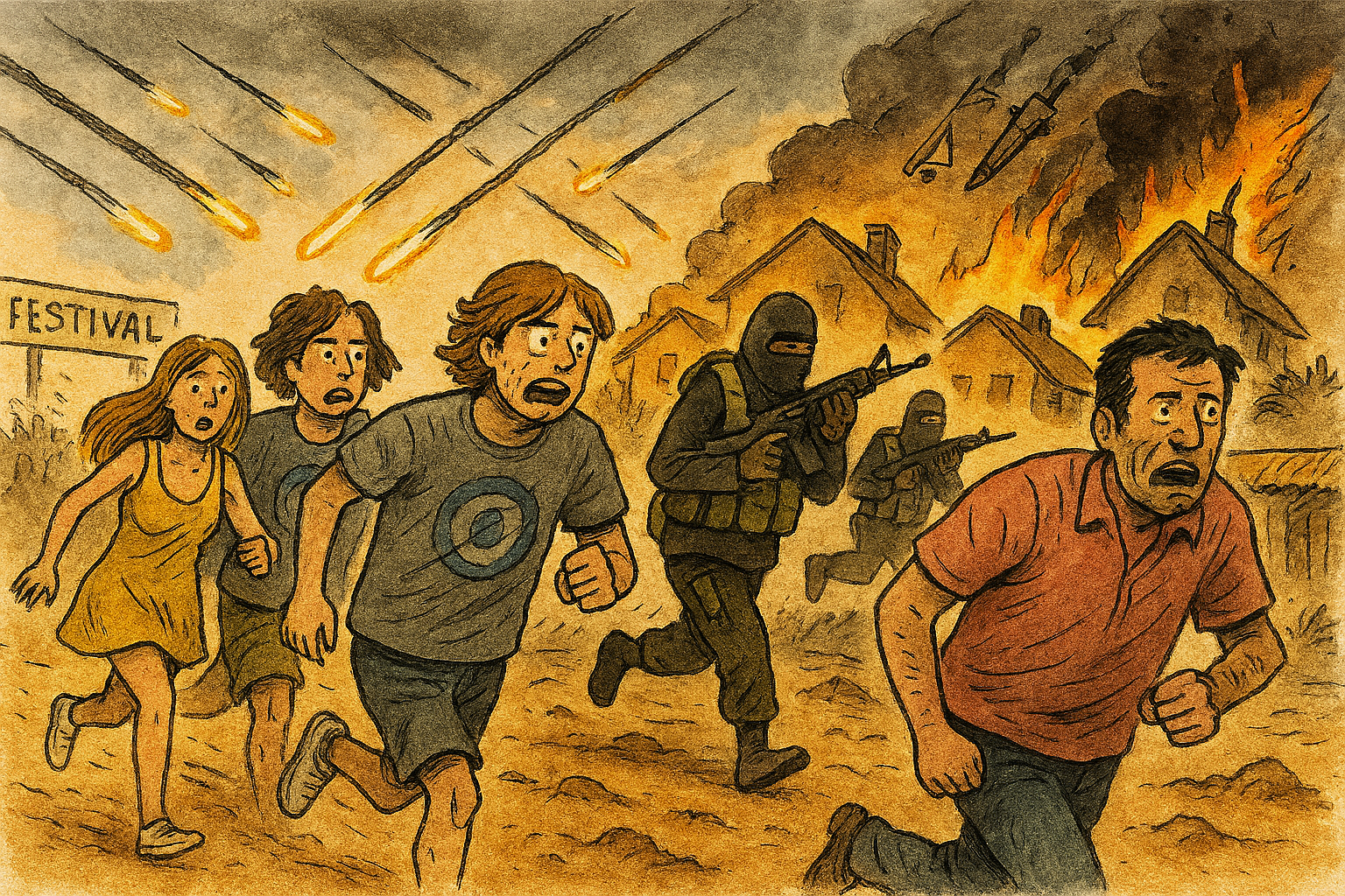 Re’im, où des civils sont massacrés ou pris en otage. Plus de