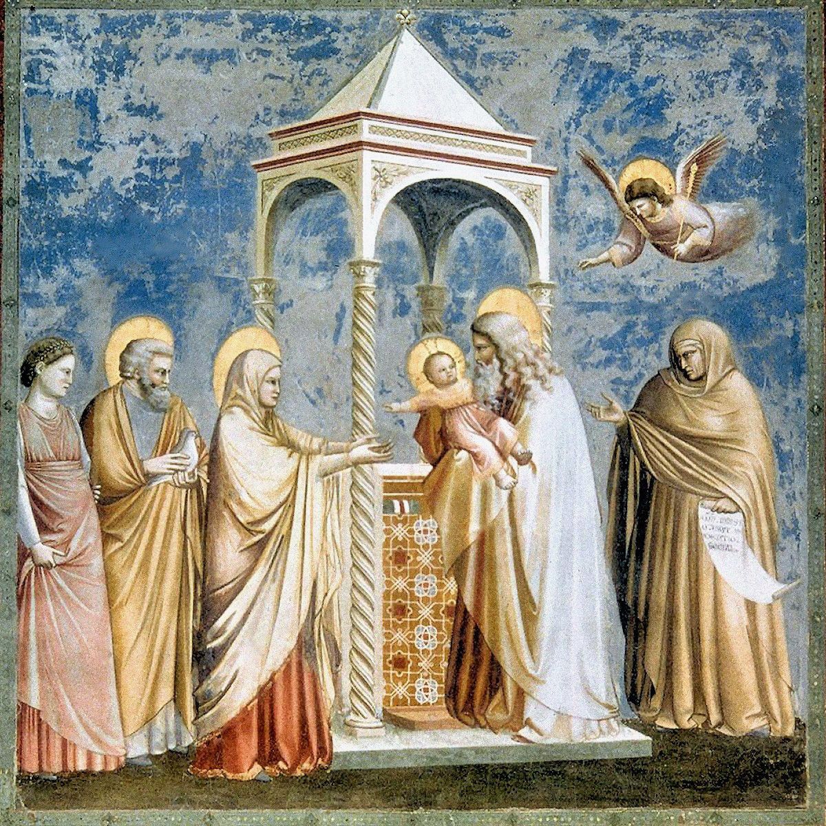 moment où Marie et Joseph présentent l’enfant Jésus au vieillard Siméon,