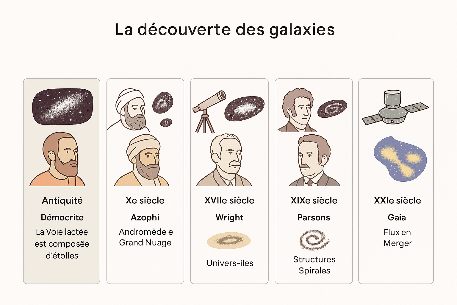retraçant l’évolution des connaissances sur les galaxies à travers cinq