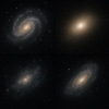 de galaxies réparties en quadrants. En haut à gauche, une galaxie spirale avec