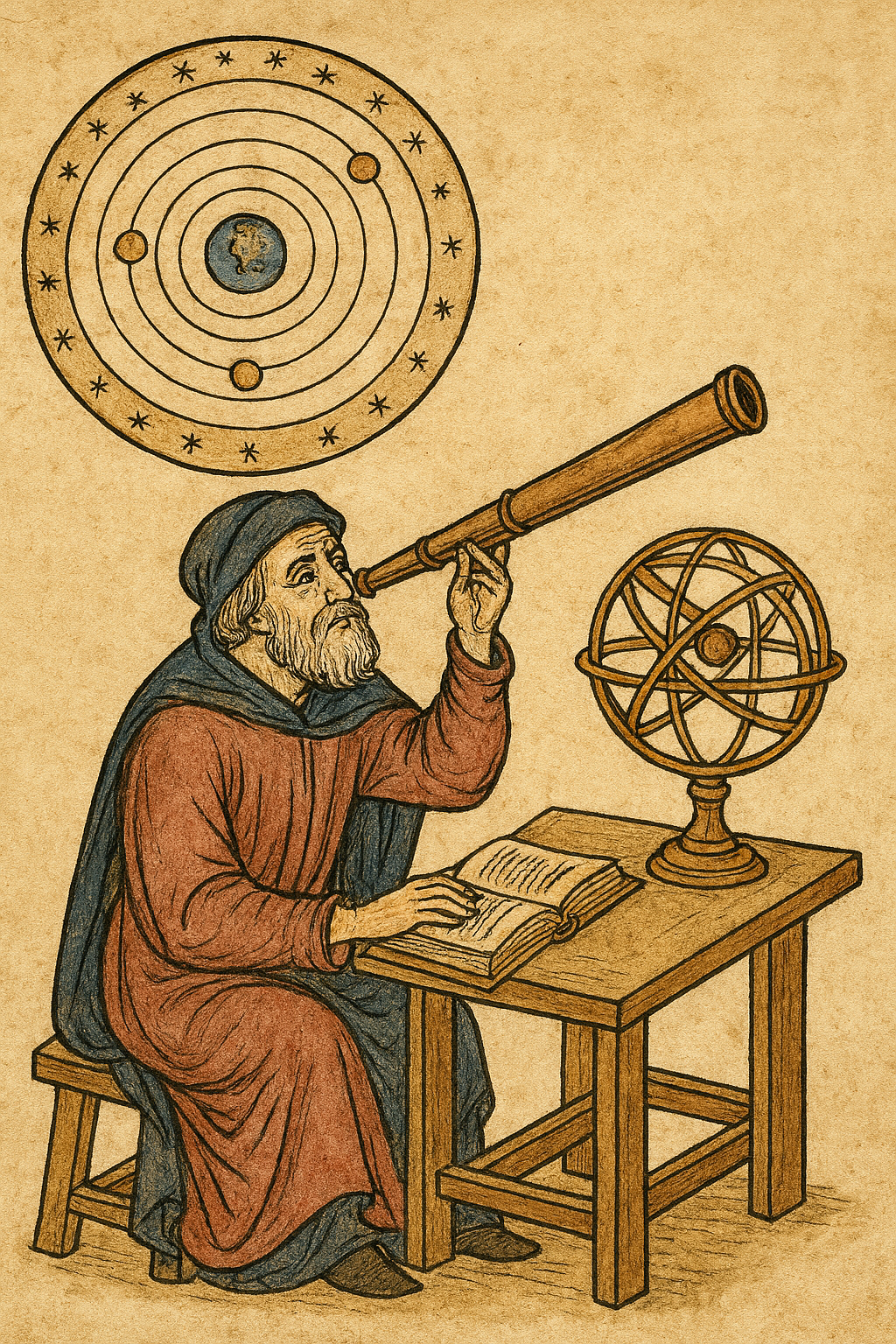 3. Utilisation médiévale du modèle Scène montrant un astronome médiéval