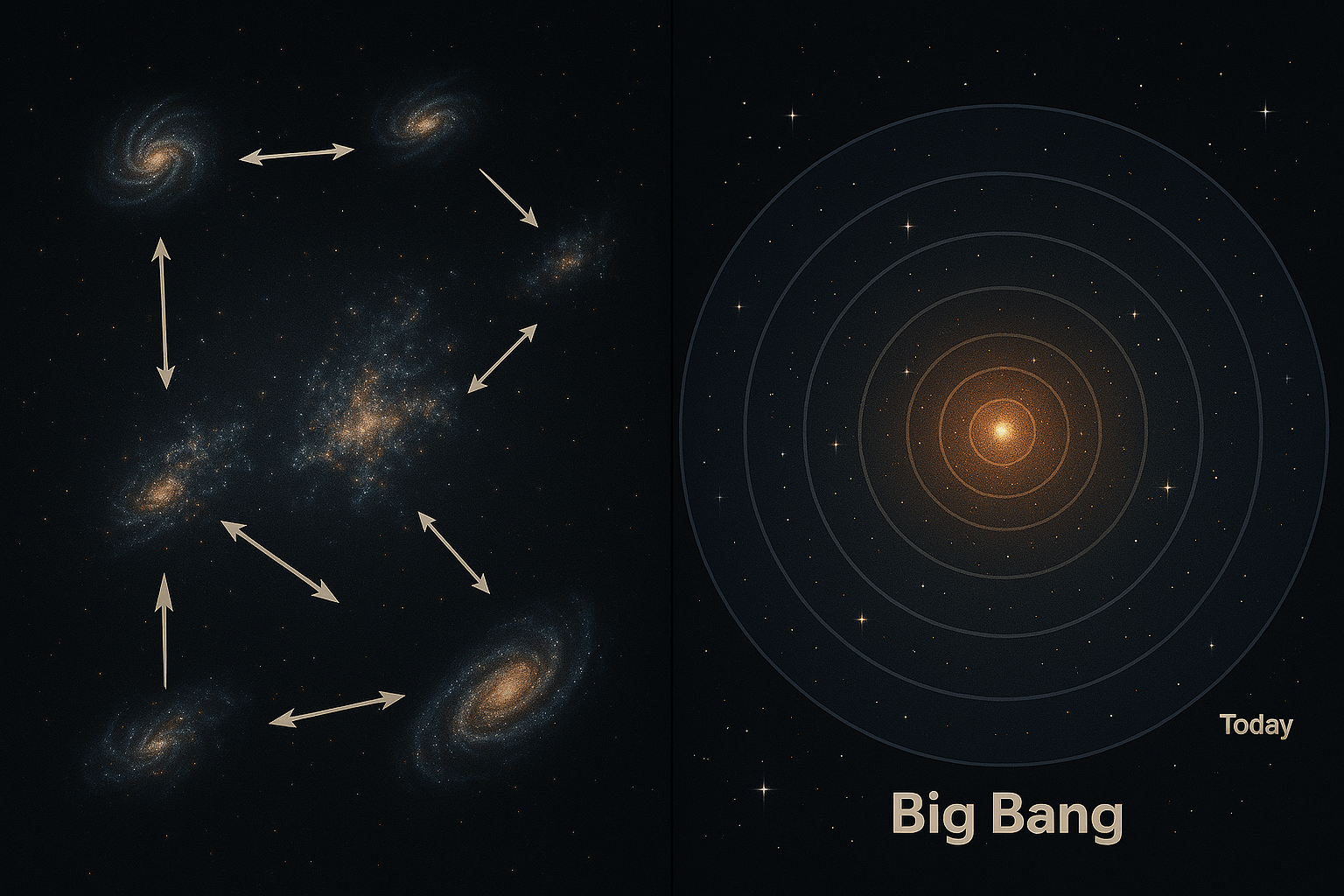 rapidement. À droite, un schéma concentrique montre l’univers en expansion
