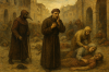 brune semble accablé ou en prière, incarnant la détresse spirituelle