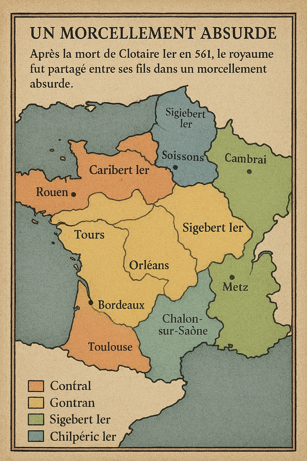 de Clotaire Ier. La carte illustre visuellement la complexité et