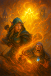 concentrée, canalise une énergie arcanique qui s’élève en spirales vers