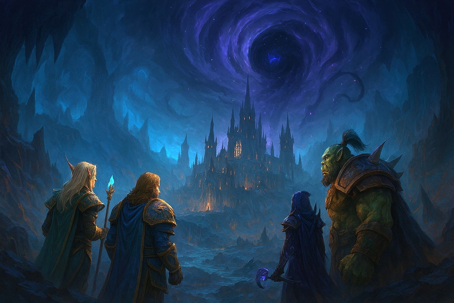 | L’image représente une scène mystique dans les profondeurs d’Azeroth,