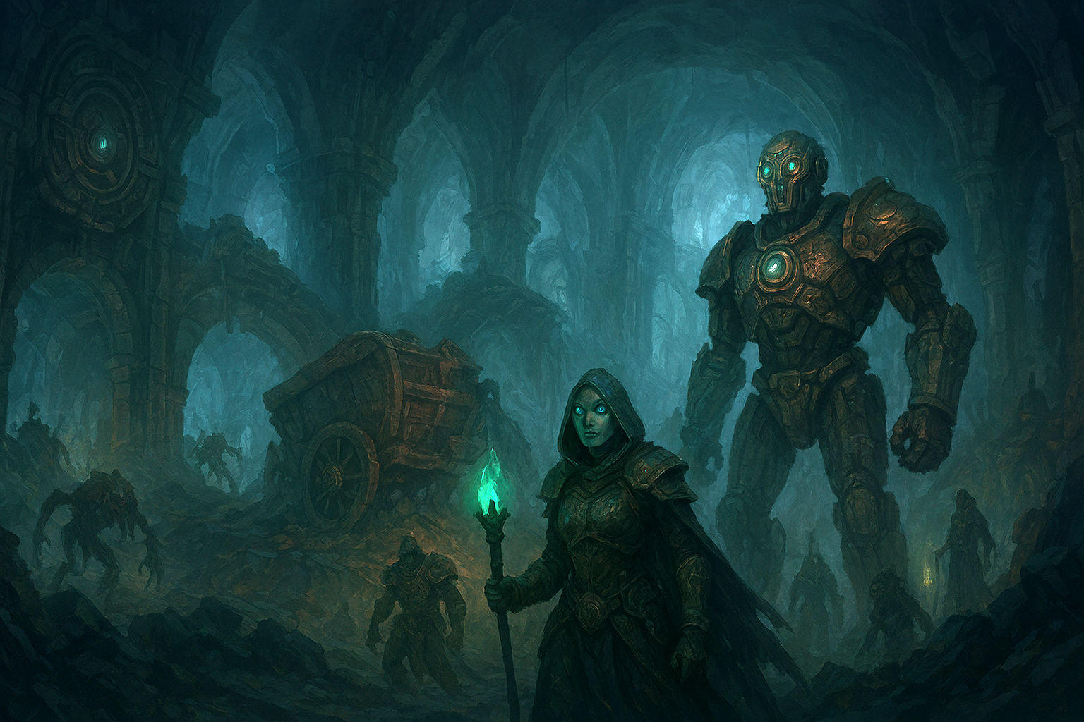 | L’image représente une scène souterraine spectaculaire où la capitale de