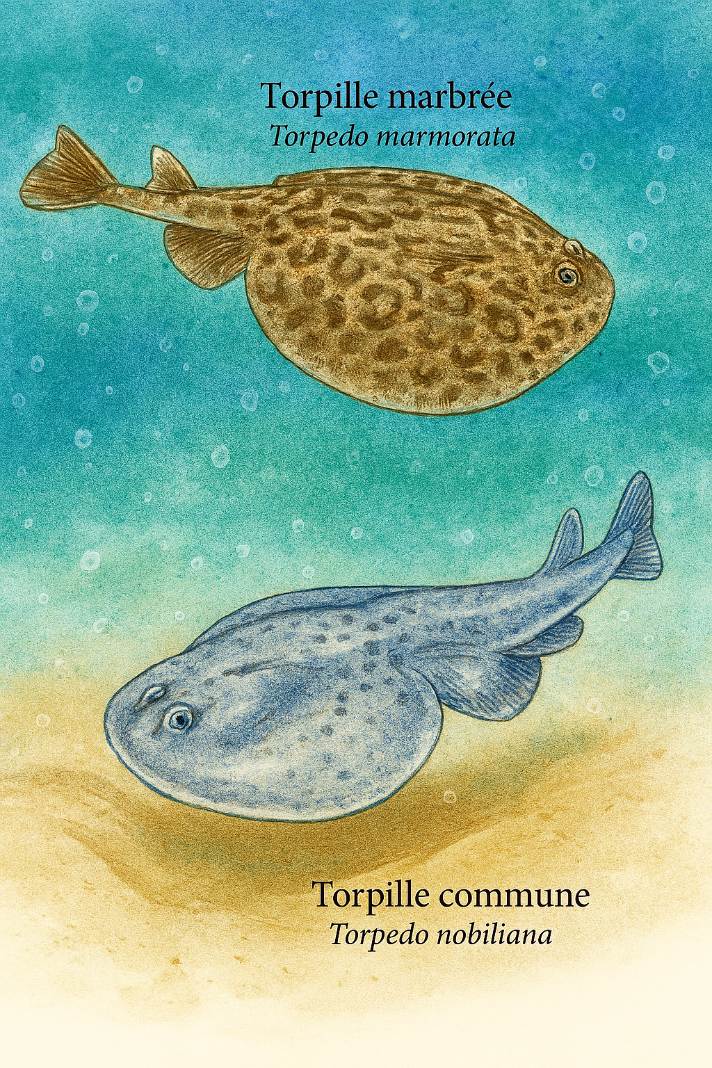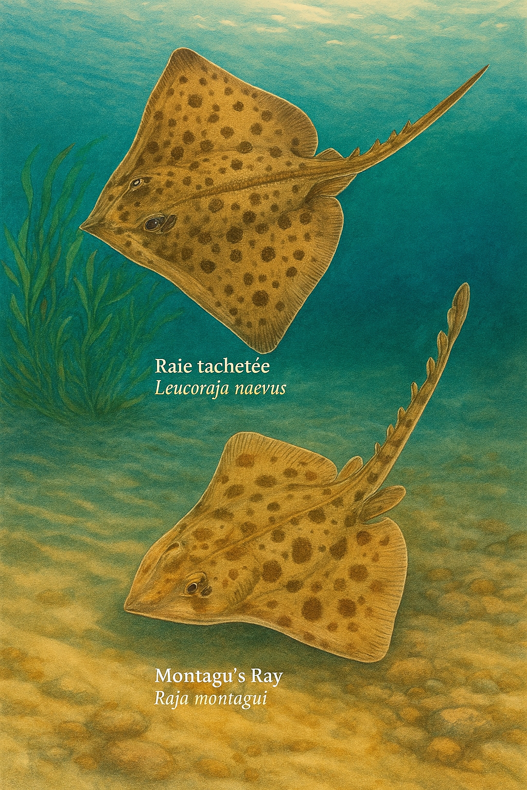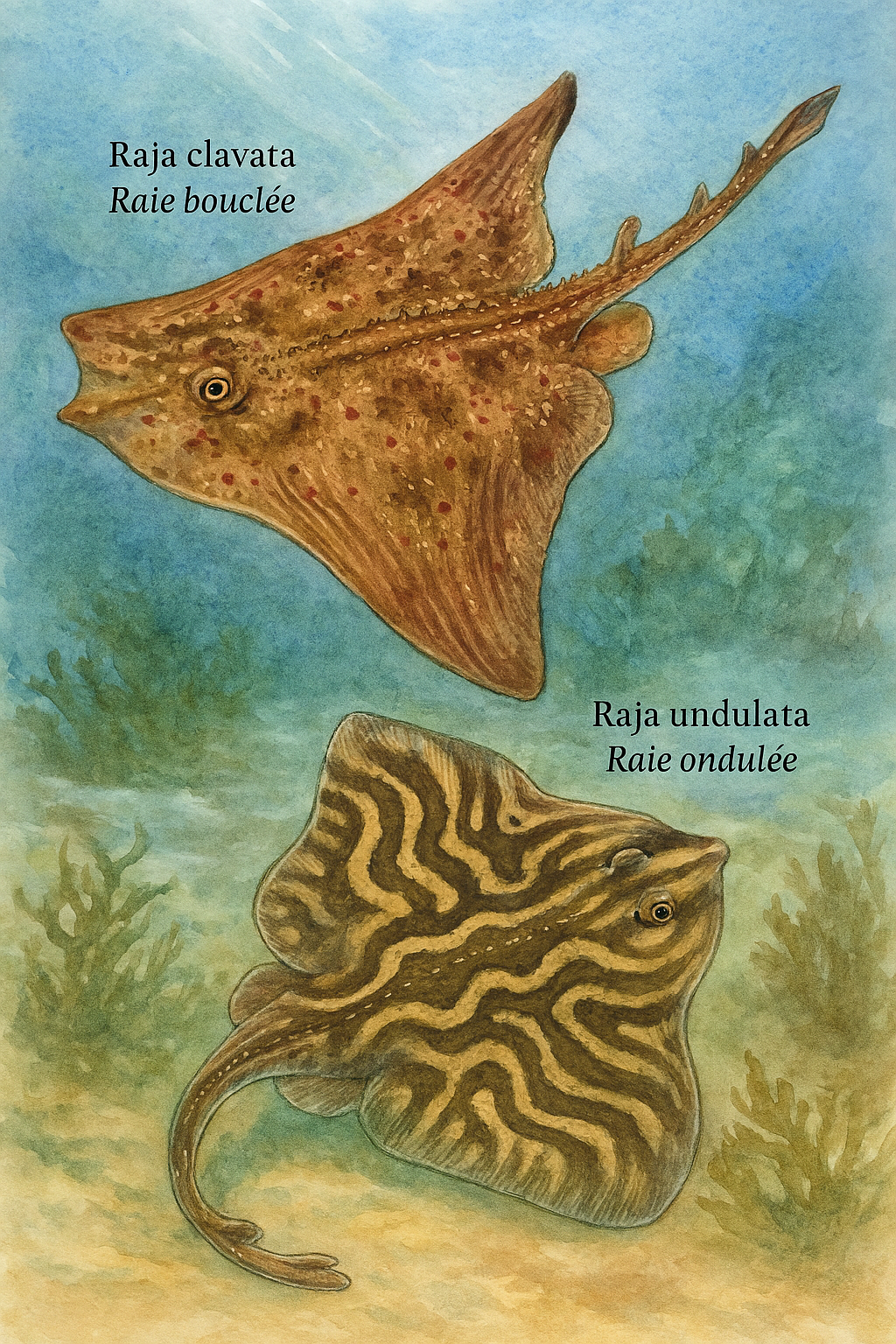 la raie brunette (Raja miraletus), et des chimères