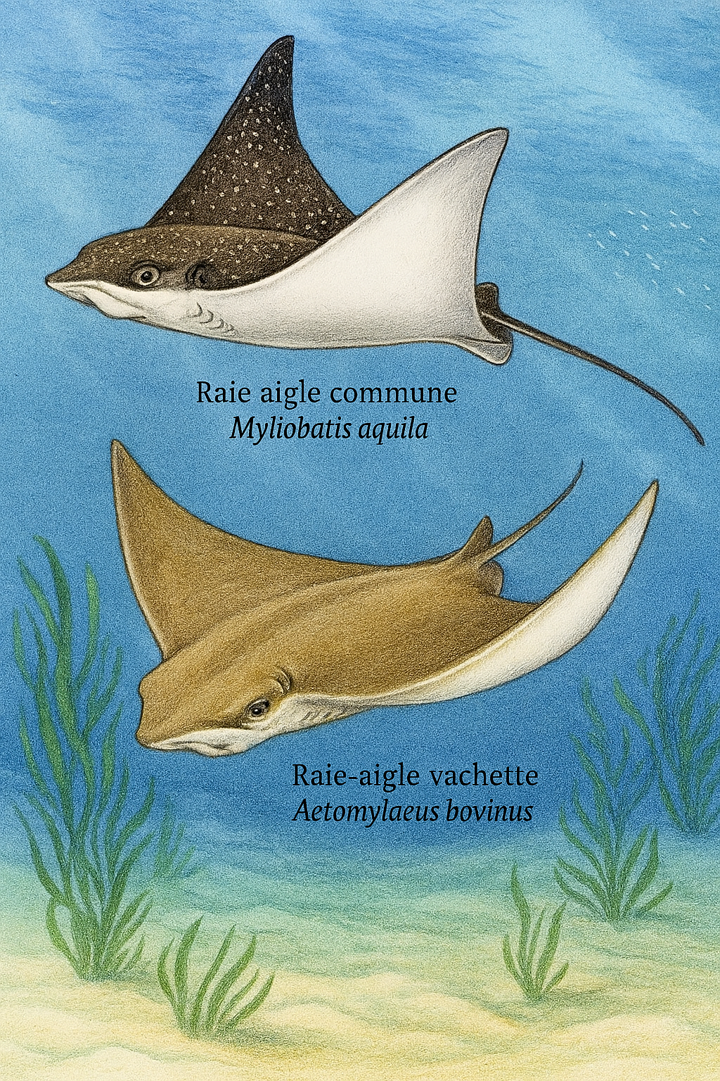 vulpinus), la raie pastenague (Dasyatis pastinaca),