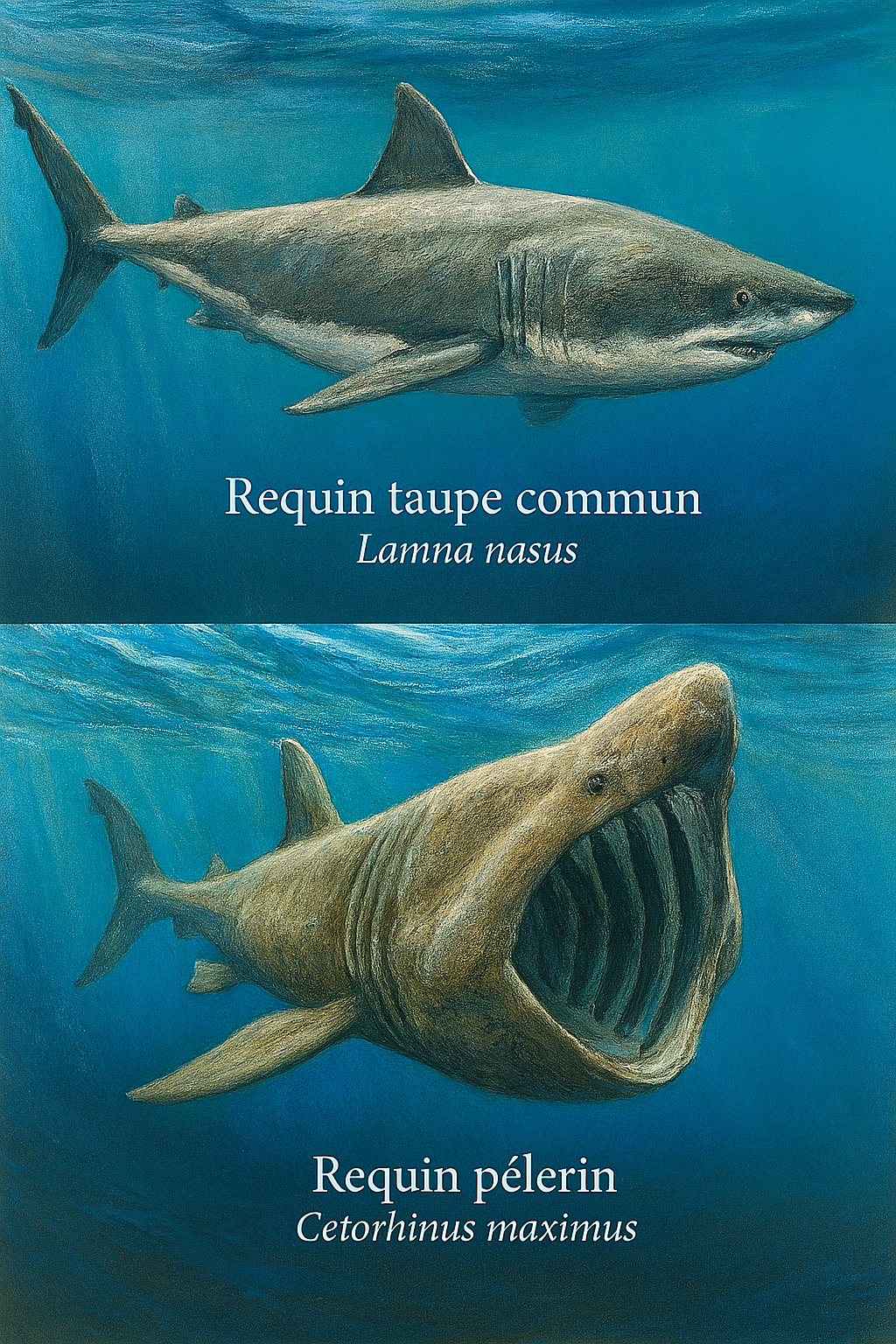 le requin pèlerin (Cetorhinus maximus) et le requin taupe