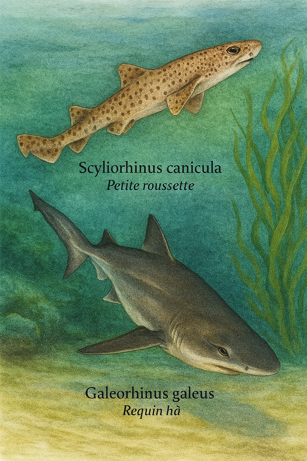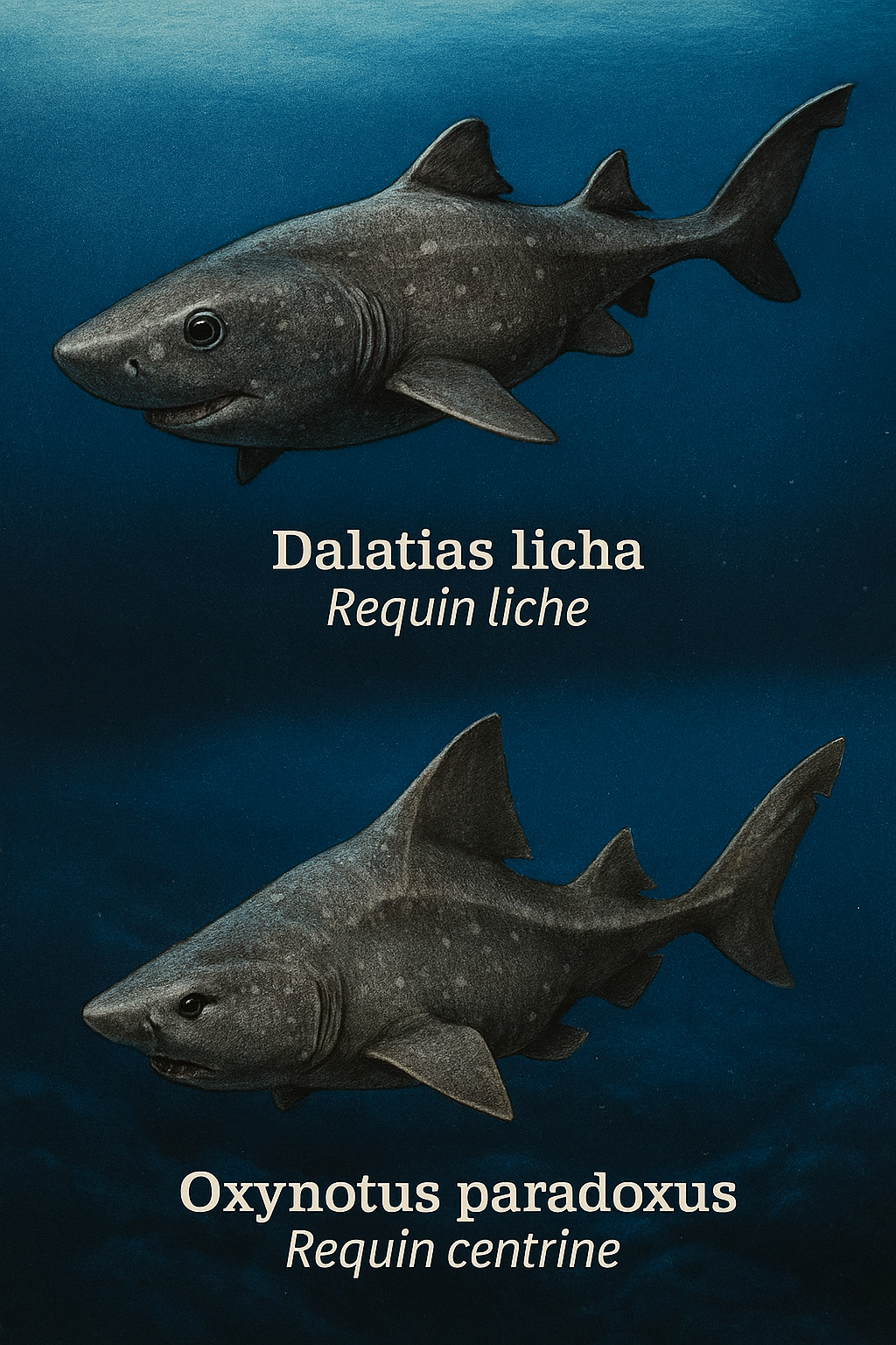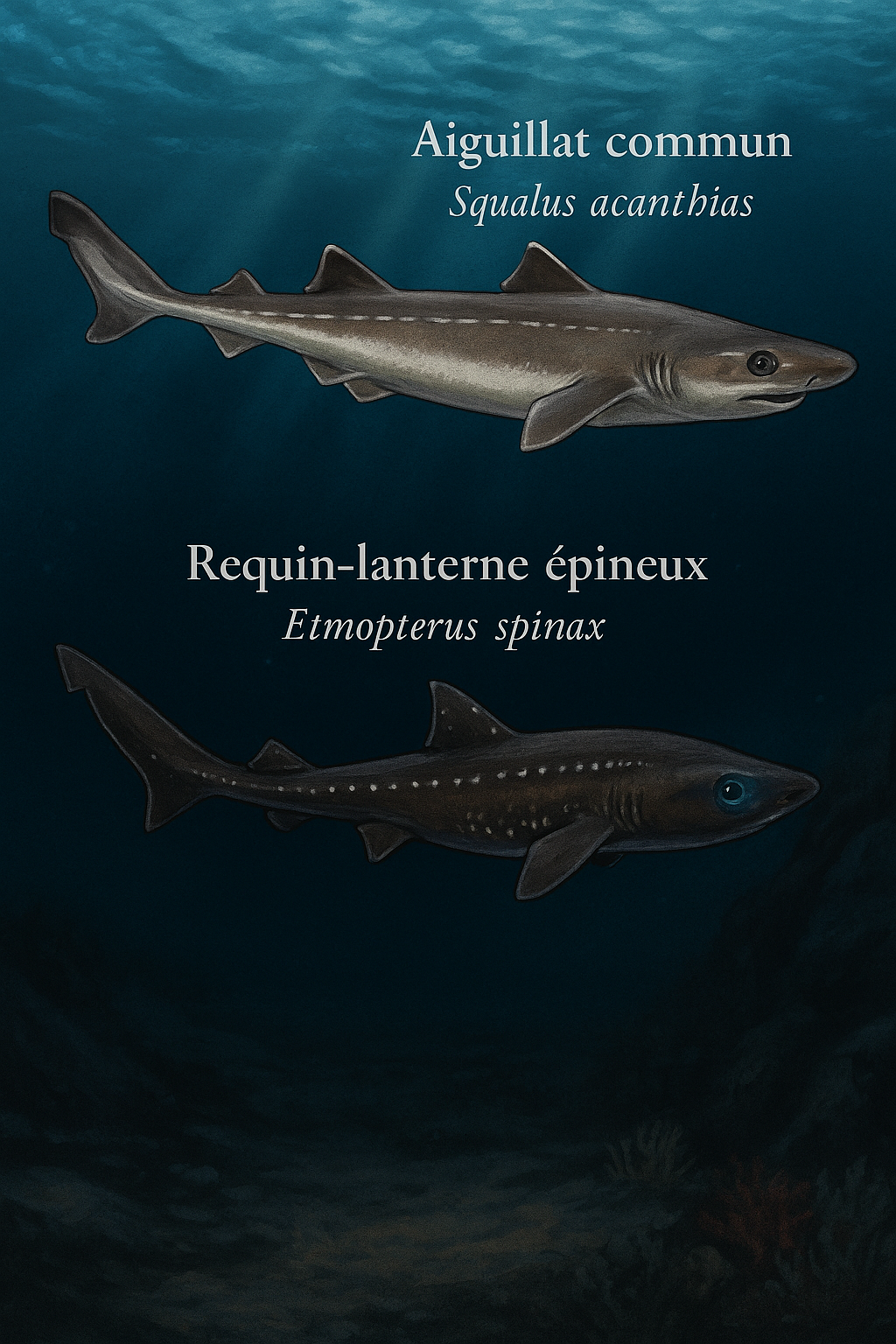 large, comme Centrophorus granulosus, Etmopterus spinax