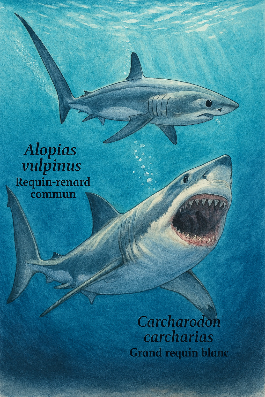 taupe bleu (Isurus oxyrinchus) et le requin renard (Alopias