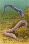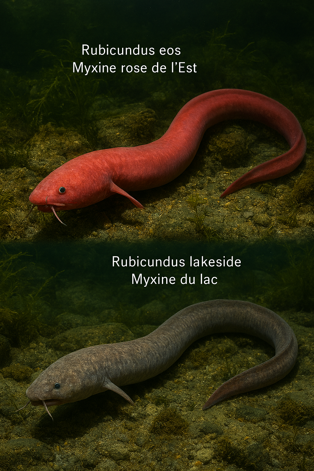 L’image montre deux espèces de myxines dans un décor sous-marin