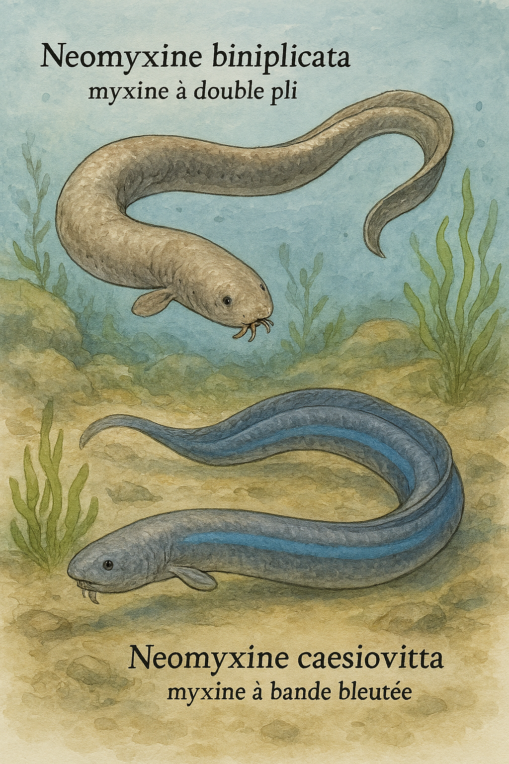 Neomyxine biniplicata, appelée myxine à double pli, présente une