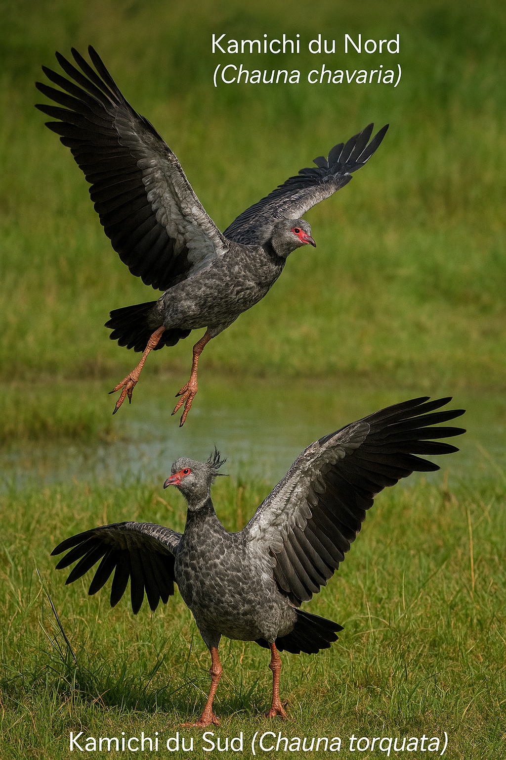 : Chauna torquata (Kamichi à collier) et Chauna chavaria (Kamichi