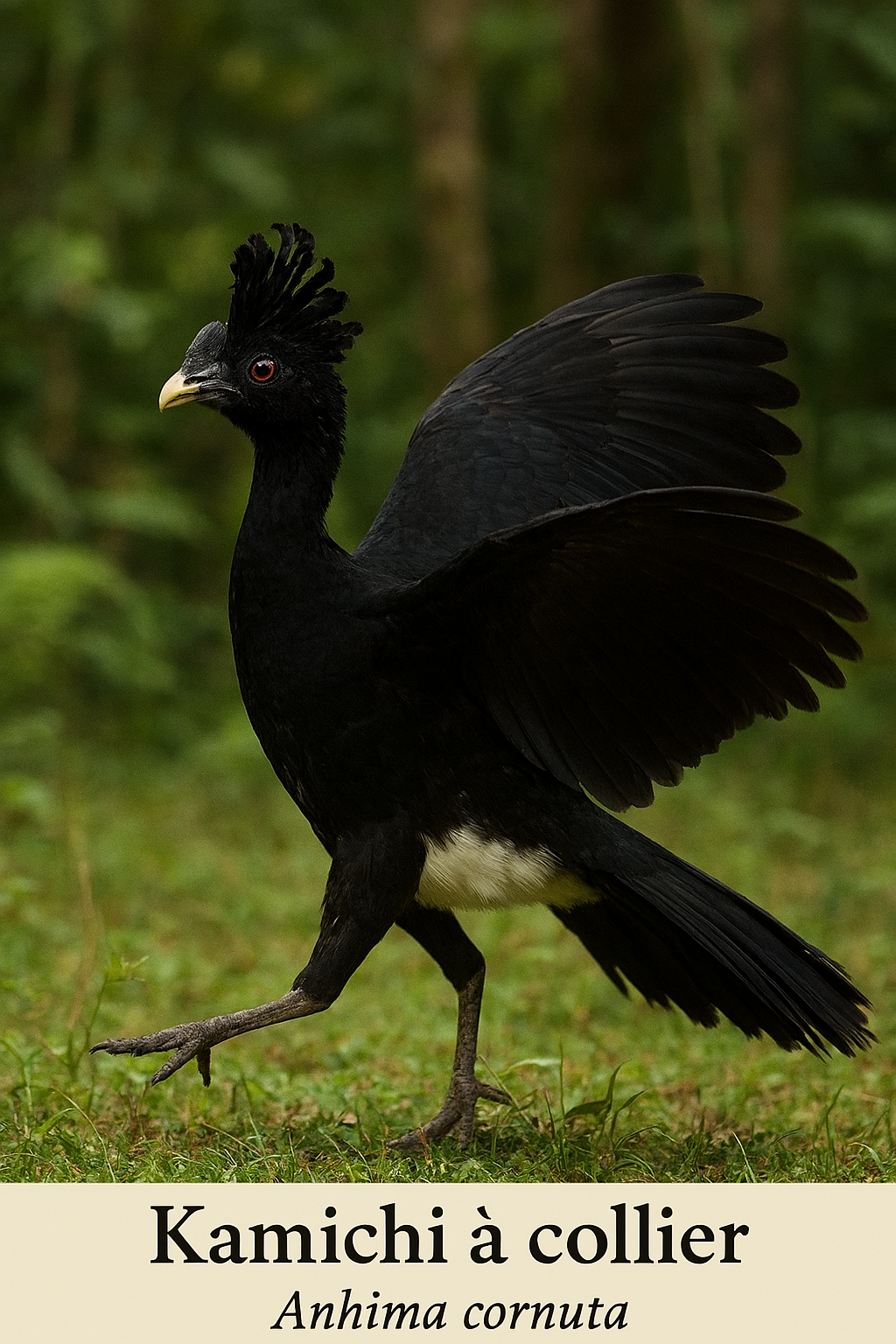Le Kamichi cornu (Anhima cornuta) est un oiseau massif d’Amérique du