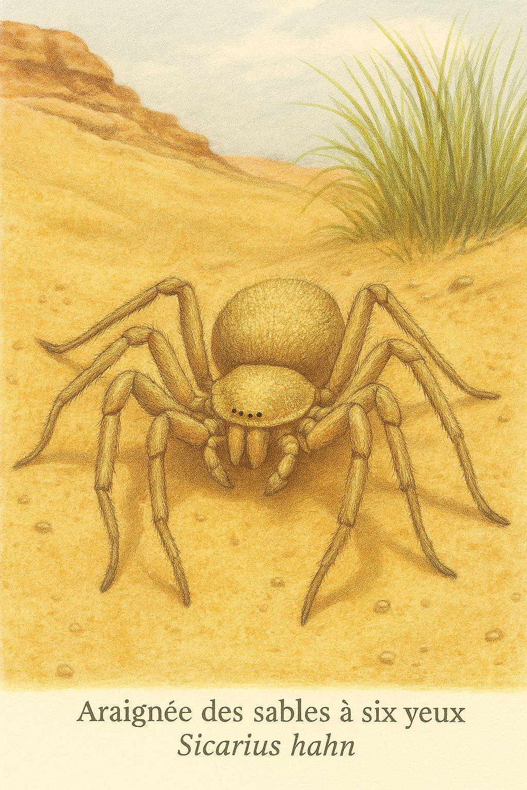 central, des chélicères orientées vers le bas (comme les mygales), et