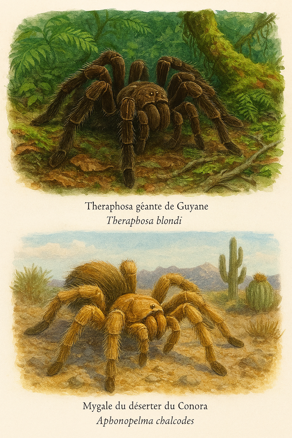 Theraphosa blondi (mygale goliath) atteignent 12 cm de corps et