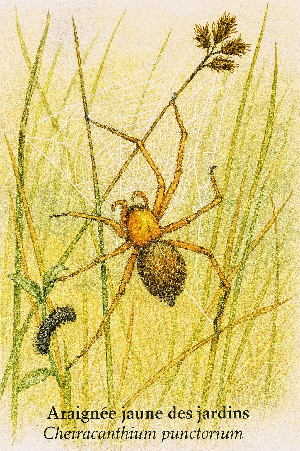 présente une livrée éclatante jaune et noire, avec des pattes longues et