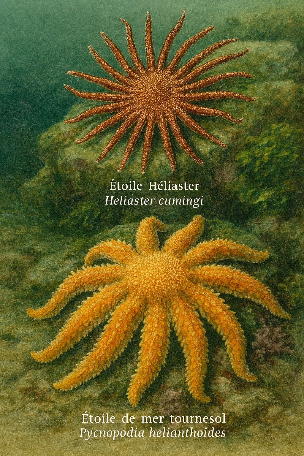 espèces comme Luidia ciliaris peuvent atteindre jusqu’à 40