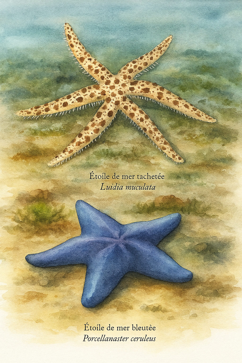 L’image suivante illustre deux étoiles de mer contrastées : en haut,