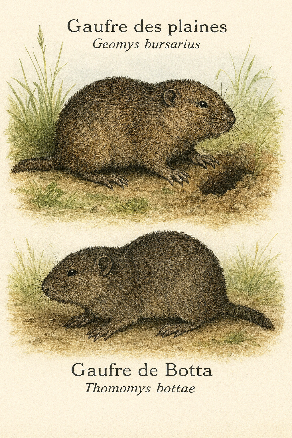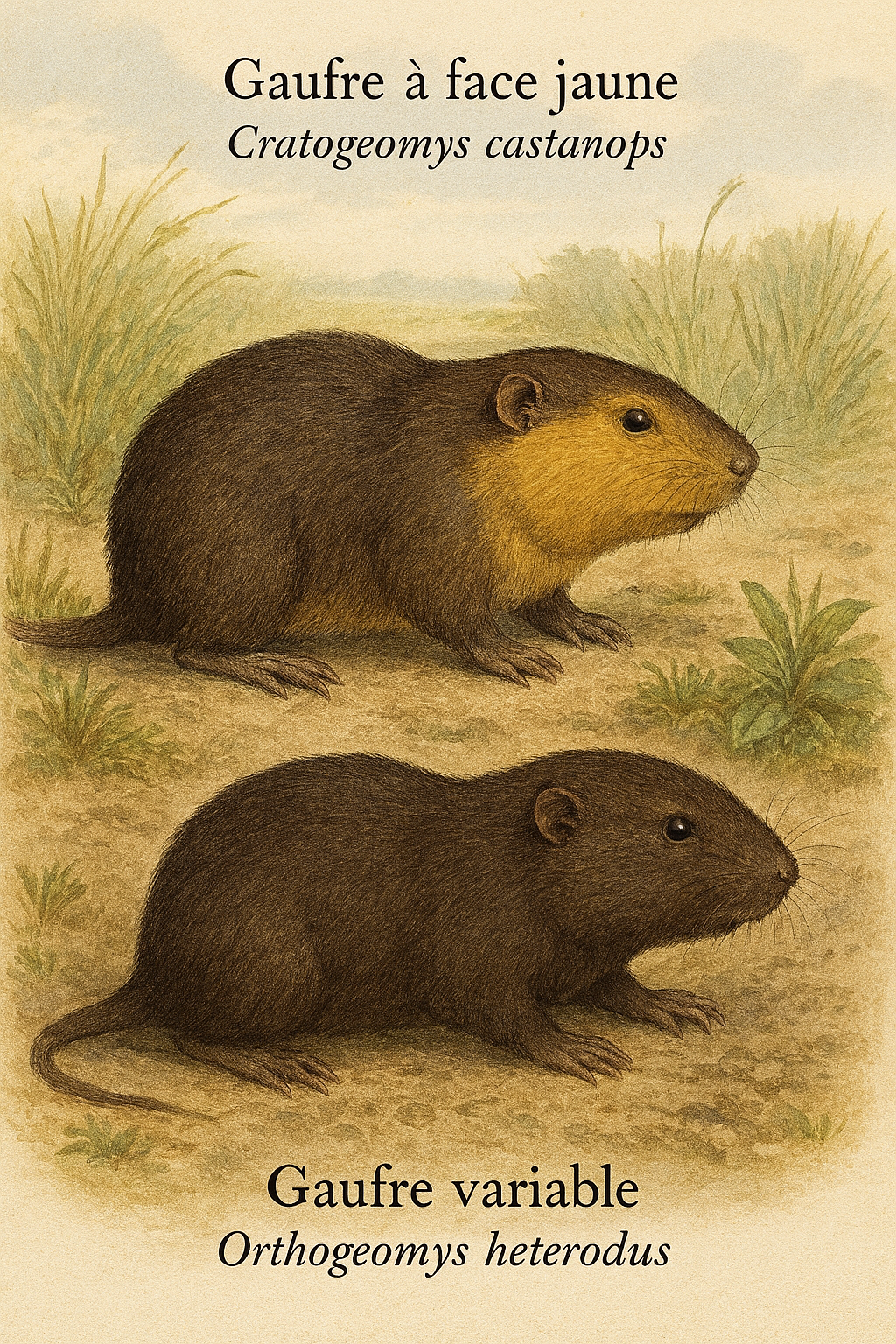trapue, avec une fourrure sombre et hérissée. Chaque espèce est illustrée