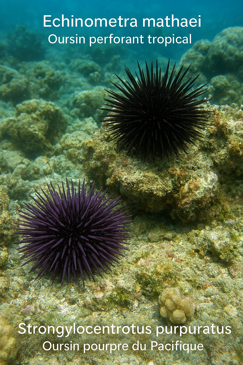 Classification (env 1.200 esp). Métazoaires-Invertébrés-Echinodermes-Echinozoaires-Echinoïdes (Oursins...)