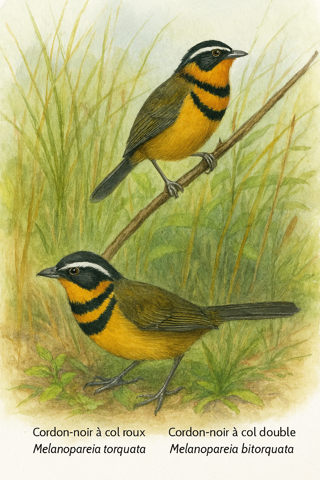 noirs, roux, olive ou blancs. Les espèces du genre Melanopareia