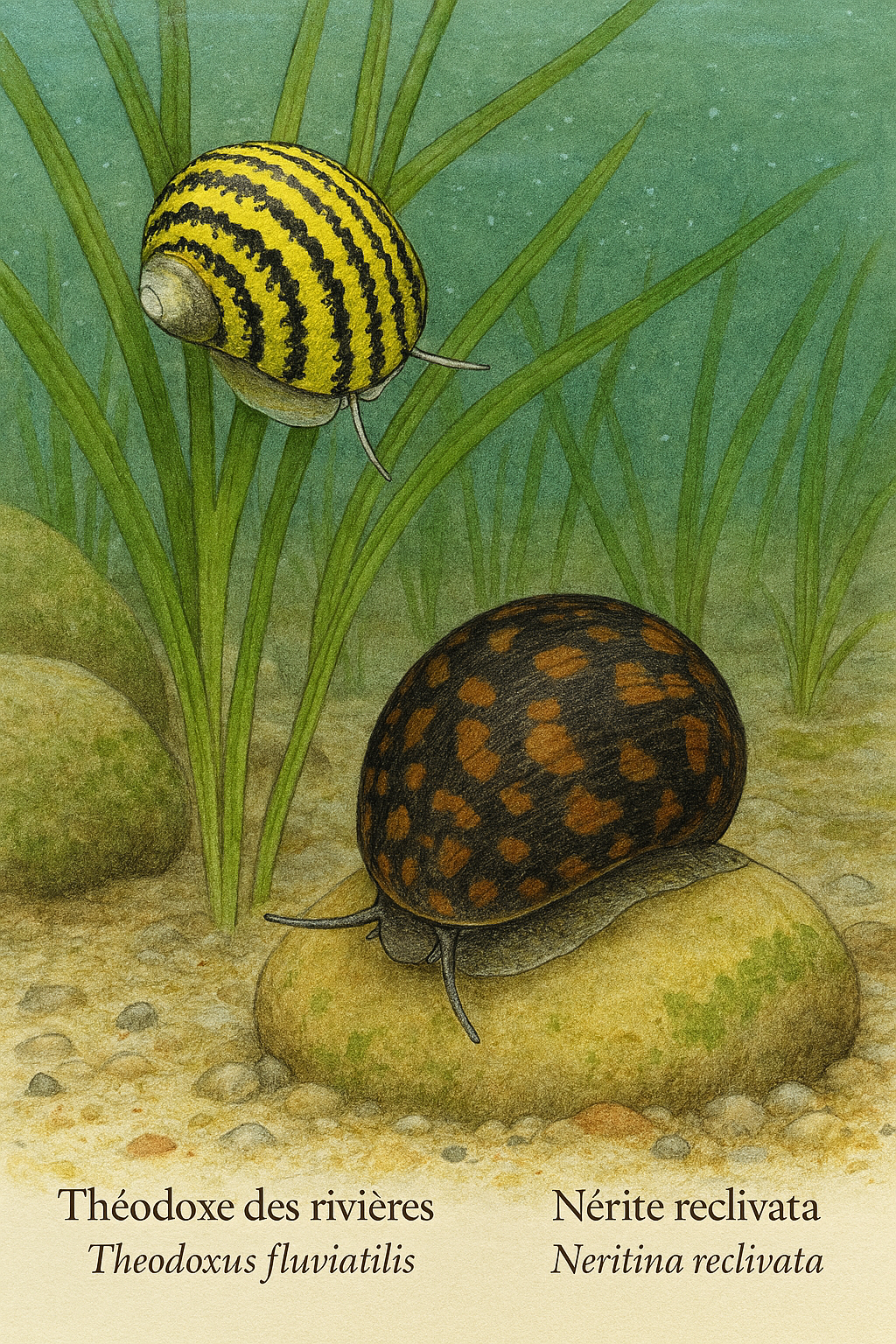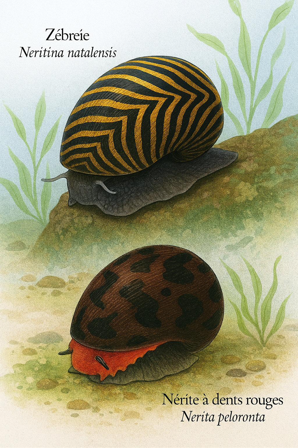 La première image montre deux mollusques marins sur le