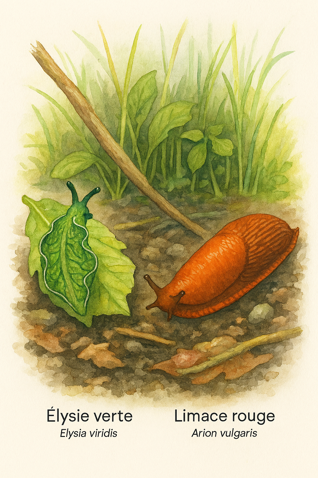 forestier : à gauche, l’Élysie verte (Elysia viridis), une