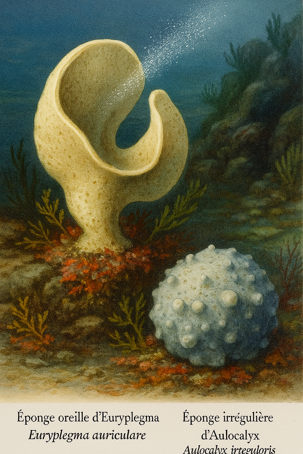 Les deux illustrations mettent en lumière des spongiaires