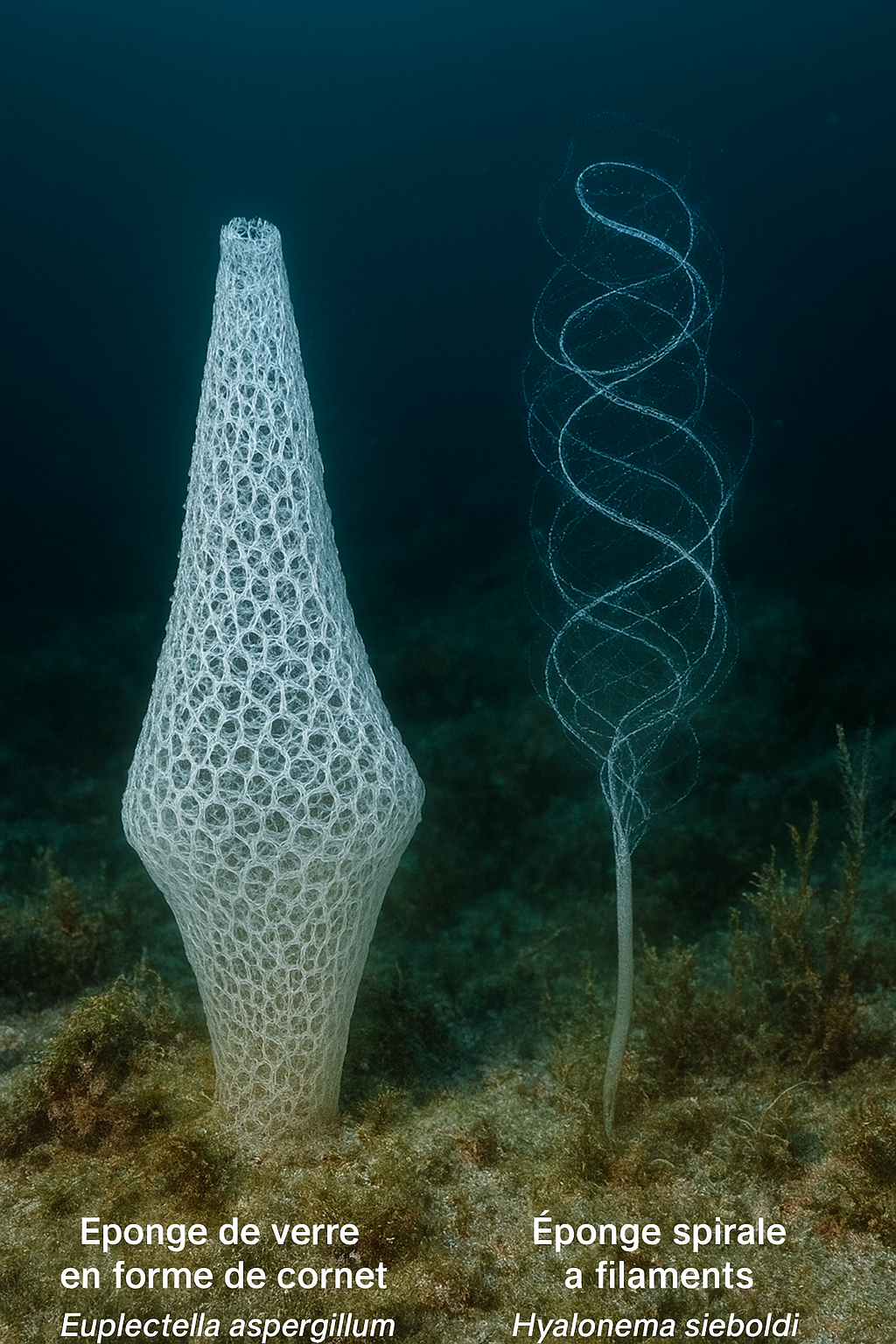 La seconde image compare deux espèces du genre Euplectella,