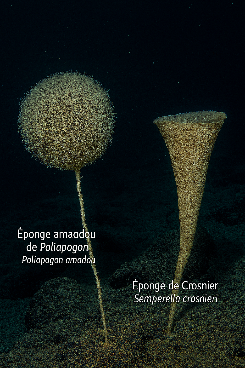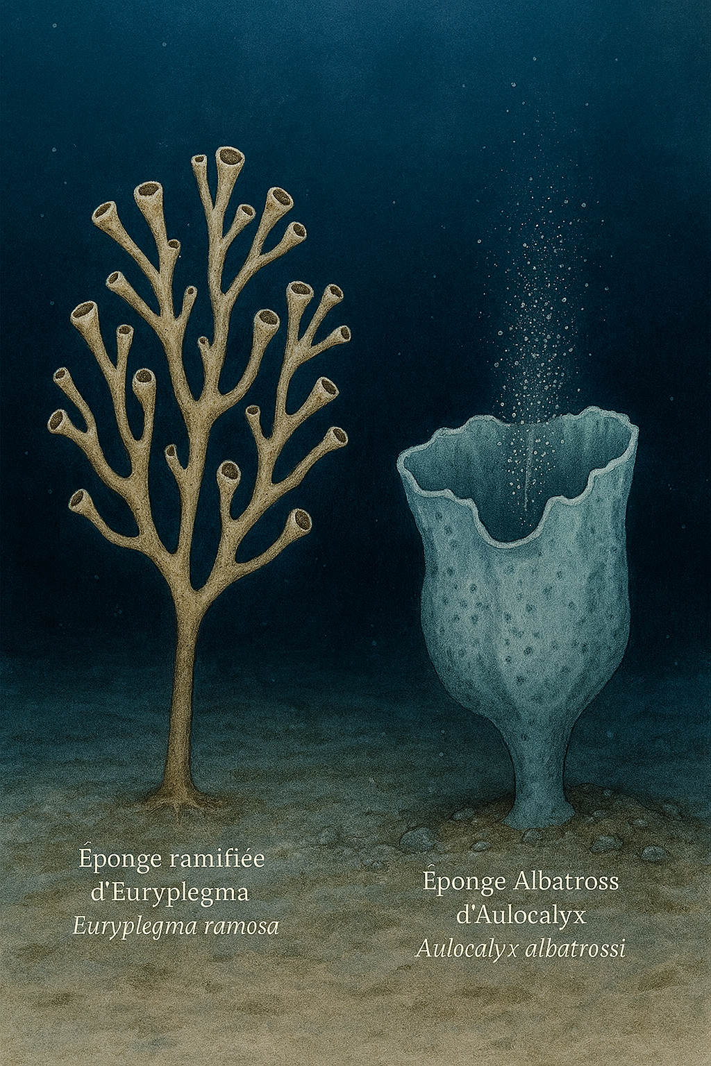 filtrantes en milieu profond. À droite, l’éponge irrégulière